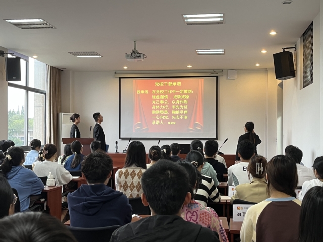 首先,由全体成员共同观看党校学员视频,感受入党积极分子们对于加入党校学习的态度及决心。接着,进行培训班班干部聘书颁发和全体干部学员宣誓承诺仪式。