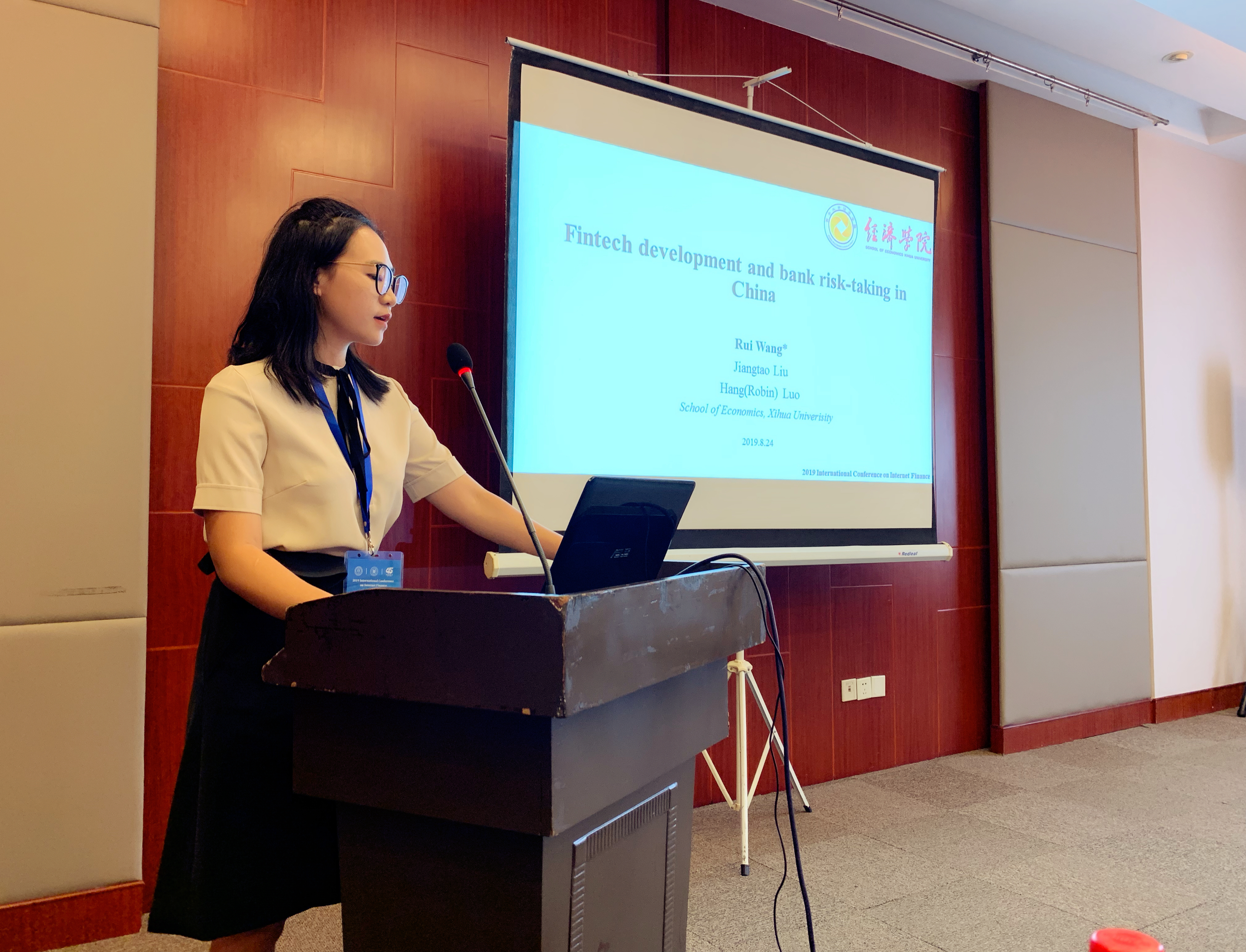 2019年8月23-25日,2019互联网金融国际学术会议(2019 International Conference on Internet Finance (ICIF))在杭州浙江财经大学举行。公司教师王蕊受邀参加了本次会议,并作题目为“Fintech development and bank risk-taking in China”的论文宣读。