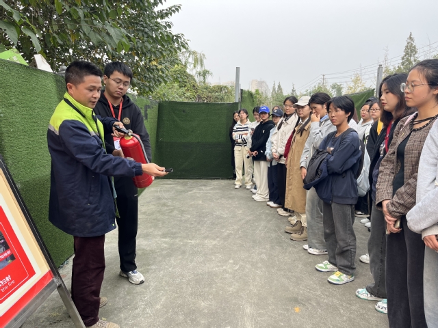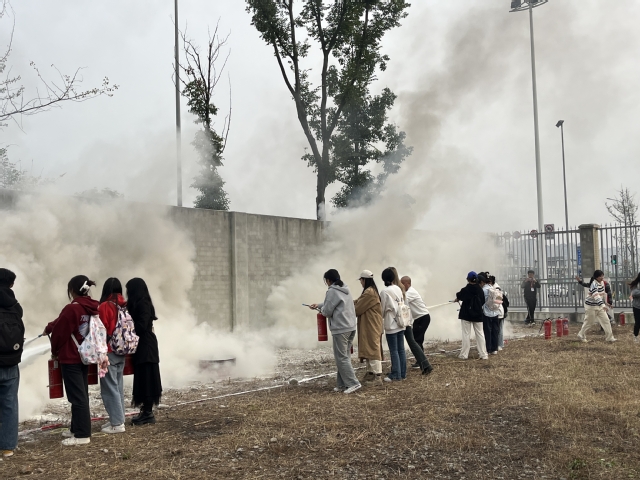 接着,米材映向在场同学演示了使用灭火器的正确方法与注意事项,并带领同学们亲自体验使用灭火器。同学们反响热烈,积极主动尝试,认真按照学得的步骤使用灭火器将燃烧的大火瞬间扑灭。