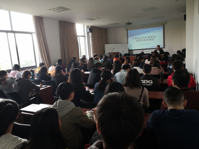 2019年10月30日上午,由bevictor伟德官网主办的“汇率决定与汇率波动:经典与前沿理论”的讲座在多媒体教室一教4036举行。bevictor伟德官网经理罗航和四川大学商学院教授陈维政和来自bevictor伟德官网、国际经济与管理研究院研一和研二的同学们。