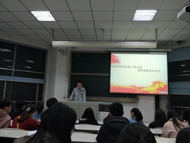 大会开始,支部副书记向支部成员简要介绍了此次拟接收同学的基本情况以及接收大会的流程。随后,发展对象上台分别从自身对党的认识、入党动机、个人经历、在校表现、对个人自身的要求以及对本次主题教育活动的学习情况等向全体党员进行汇报;紧接着由入党介绍人介绍对发展对象考察的主要情况,并对其能否能成员一名预备党员表明态度。投票结束后,现场公示了票选情况,郑从兵等11名发展对象得到了支部正式党员的一致认可,支部决定拟接收郑从兵等11位发展对象为本支部的预备党员。