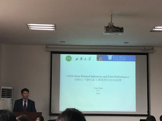 Ling Leng教授基于国内外多家公司的相关数据,对CEO的从政经历、财务经历、海外经历和从军经历对于公司业绩的影响进行了专业的分析。得出了如果一家企业的CEO有过上下游行业的相关经历,就会有相关工作积累的经验、知识和人脉,就能帮助企业获得市场信赖、提高企业的业绩、扩大市场份额。分享完毕后,现场的老师和同学们进行了积极的互动和交流,许多老师和同学针对Ling Leng教授的数据和方法提出了自己的看法和建议,教授也做了积极的回答。
