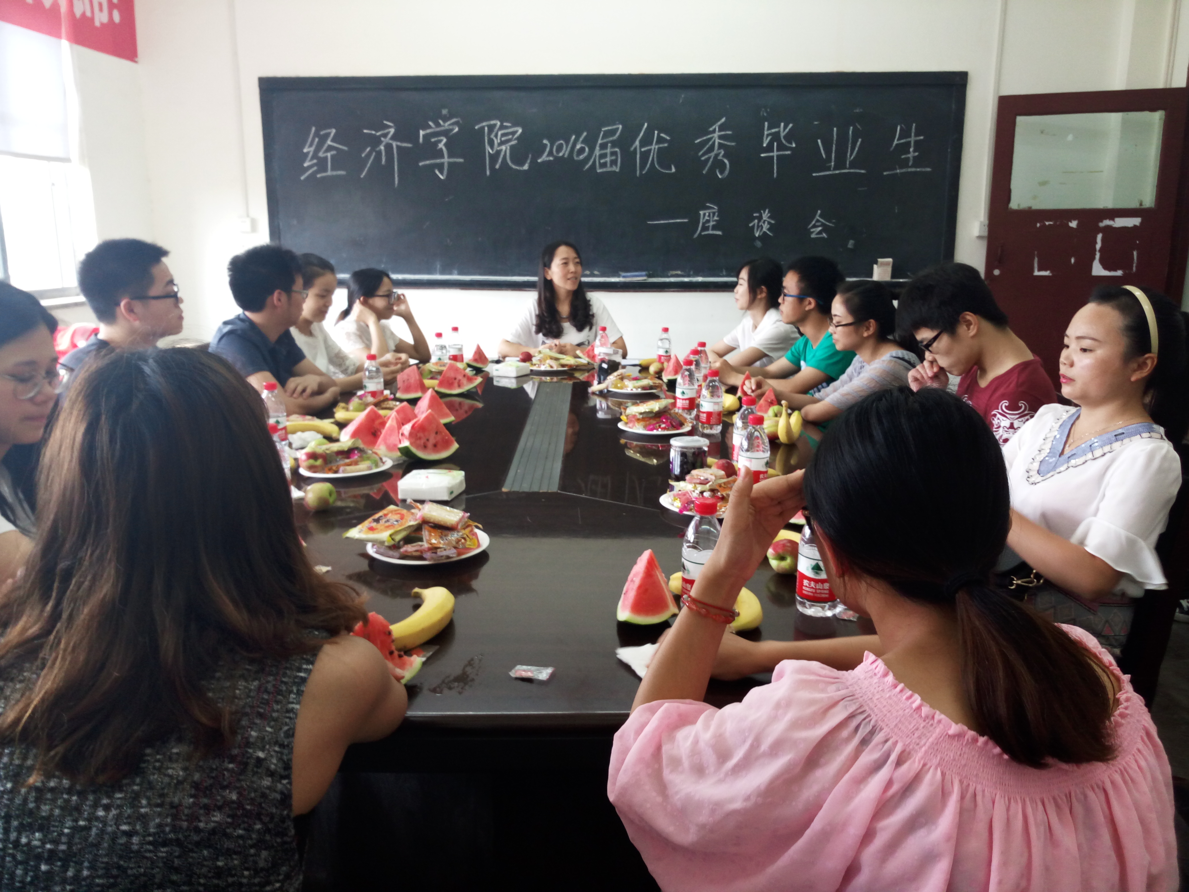 6月15日中午,bevictor伟德官网在一教5028教室举行了2016届毕业生座谈会,学工办主任王惠莹主持会议。