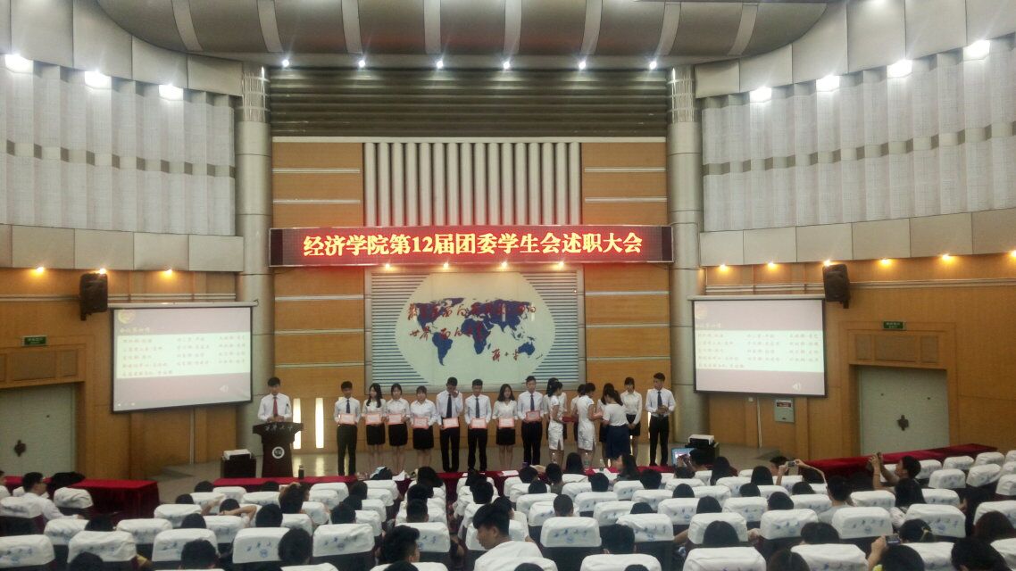 大会在全体成员奏唱共青团团歌中拉开了序幕。首先学院团委组织部、宣传部、公寓团工委,团委员工会办公室、学习部等13个部门展现了独具特色以及部门文化的小视频,青春活力的部门成员加上精心拍摄的视频体现了部门温馨的氛围。