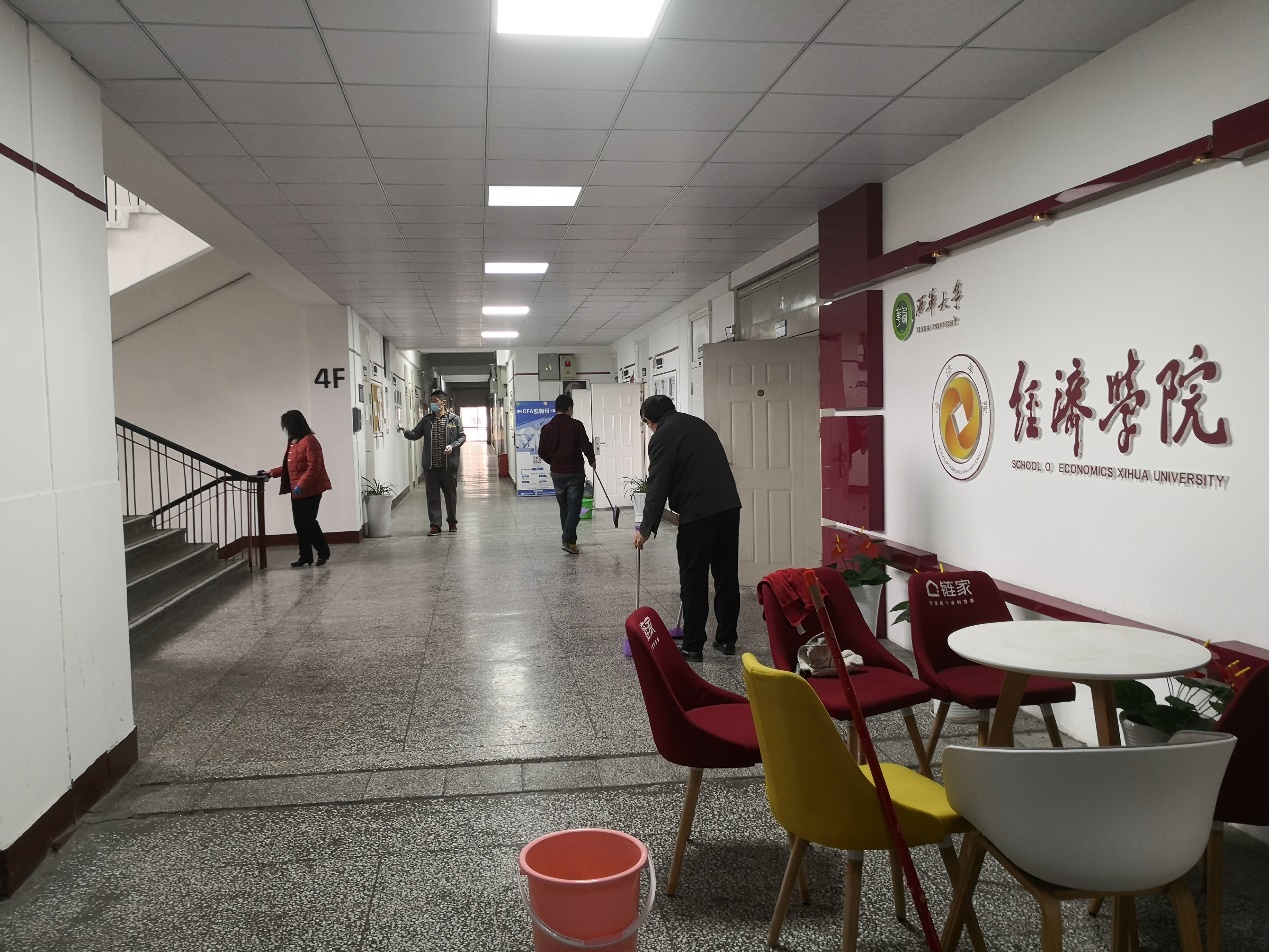按照四川省委、省政府办公厅印发《四川省爱国卫生运动“周末卫生大扫除”活动方案》的通知要求和学校相关活动通知,bevictor伟德官网于3月14日上午10:00,开展了校园“周末卫生大扫除”活动,对学院办公场所、走廊、办公室等进行大扫除,为疫情防御贡献一份力。在清洁好学院后,bevictor伟德官网与马克思主义学院一起对一教周边做了卫生打扫和垃圾清理的工作。本次活动保持了环境卫生、干净、整洁,消除病媒生物孳生地,为打赢疫情防控的人民战争、总体战、阻击战营造良好环境。