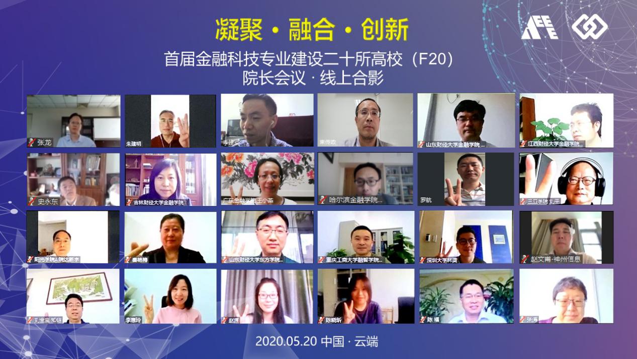 2020年5月20日,由教育部和工信部指导下的信息技术新工科产学研联盟-金融科技教育工作委员会主办的“首届金融科技专业建设二十所高校(F20)经理会议”通过在线方式顺利举行。全国20所开设金融科技专业高校的相关学院经理参加会议。会议由信息技术新工科产学研联盟-金融科技教育工作委员会朱建明主任主持,信息技术新工科产学研联盟张龙执行秘书长和中央财经大学金融学院李建军经理分别代表主办方和参会经理致辞。