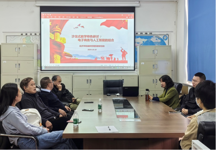 随后,与会教师就如何实现人工智能与电子商务进行结合进行热烈讨论。于代松教授认为人工智能与电子商务融合为地方经济发展带来了前所未有的机遇,电子商务专业也应以培养更好地服务于国家和地方经济发展的高素质、高水平专业人才为主要目标。熊于宁副教授认为,应将人工智能前沿理论和技术方法引入到电子商务人才培养中。这一建议得到了与会老师们的热烈响应。大家认为,通过早期接触和了解人工智能技术,可以帮助员工更好地适应未来的职业需求,提升他们的竞争力。屈放博士提出,应将人才培养目标与企业需求进行对接,可以通过与企业合作,将真实的人工智能项目引入课堂,从而增强员工的实践能力、帮助他们更好地理解人工智能在电子商务中的应用。此外,部分老师也分享了人工智能发展背景下改进教学模式、过程和方法方面所面临的挑战与应对措施。