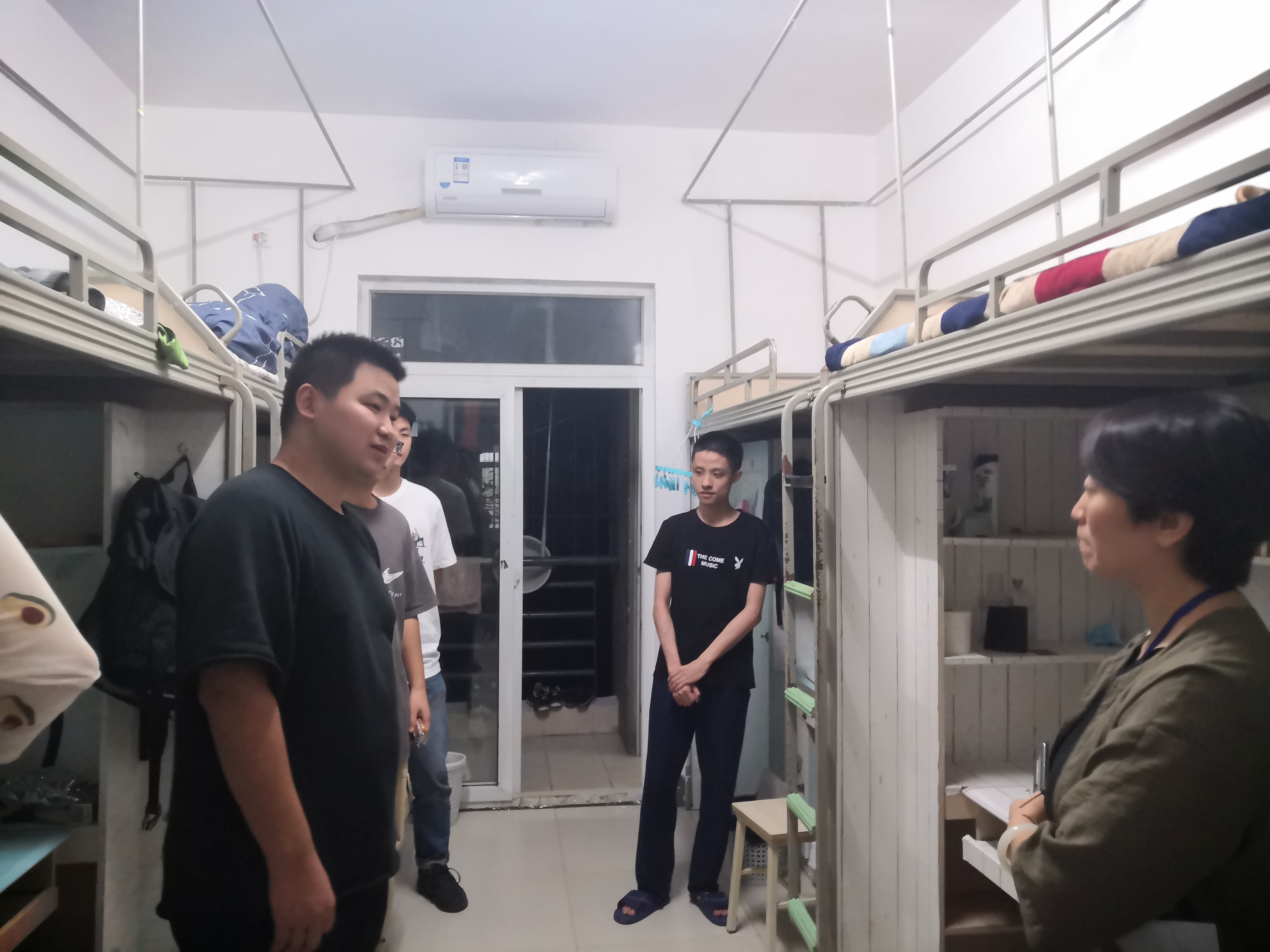 夕阳西下,紧张忙碌的迎新工作暂告一段落。入夜,王恵莹老师和两位员工代表一同走访了位于德馨5栋的研究生宿舍。作为即将陪伴新生们走过未来三年的老师,王老师与各位同学亲切沟通,一一询问着他们的基本情况,并对学院、学校的情况做了简单的介绍,不少同学提出了关于导师的选择、防疫措施、课程学习等问题,王老师也都给出了细致的解答并提出许多中肯的建议,原本略显生疏的氛围也愈发和谐温暖起来。