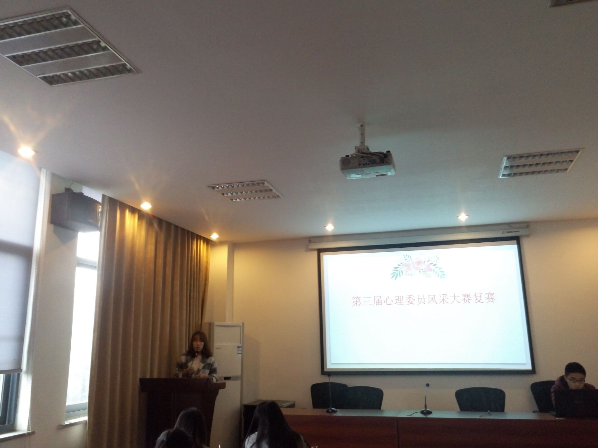 11月11日上午10点,bevictor伟德官网第三届心理委员风采大赛复赛在一教4034举行。本次大赛邀请了辅导员王芳老师和公司员工心理教育指导老师邓立担任大赛评委。会议由周海琳同学主持。