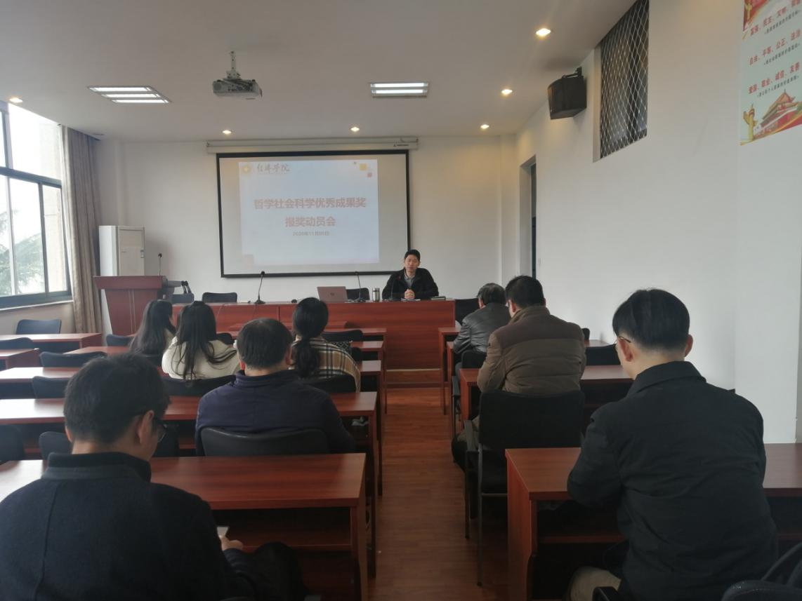 1月5日上午,公司“四川省哲学社会科学优秀成果奖申报动员会”在一教4036会议室召开。会议由罗航经理主持,学院部分领导和骨干教师参加。