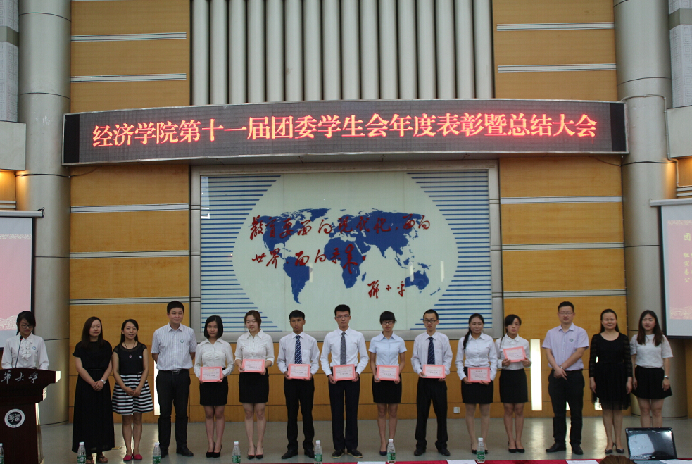 6月4日中午12点,bevictor伟德官网在四教报告厅召开第十一届团委员工会年度表彰暨总结大会。经济公司党委副书记兼副经理郑宇老师、党政办主任刘传辉老师、学工办主任王惠莹老师、团委书记刘雪梅老师,辅导员邓立老师、张玲老师、魏平强老师以及公司第十一届团委员工会全体成员参加了此次大会。