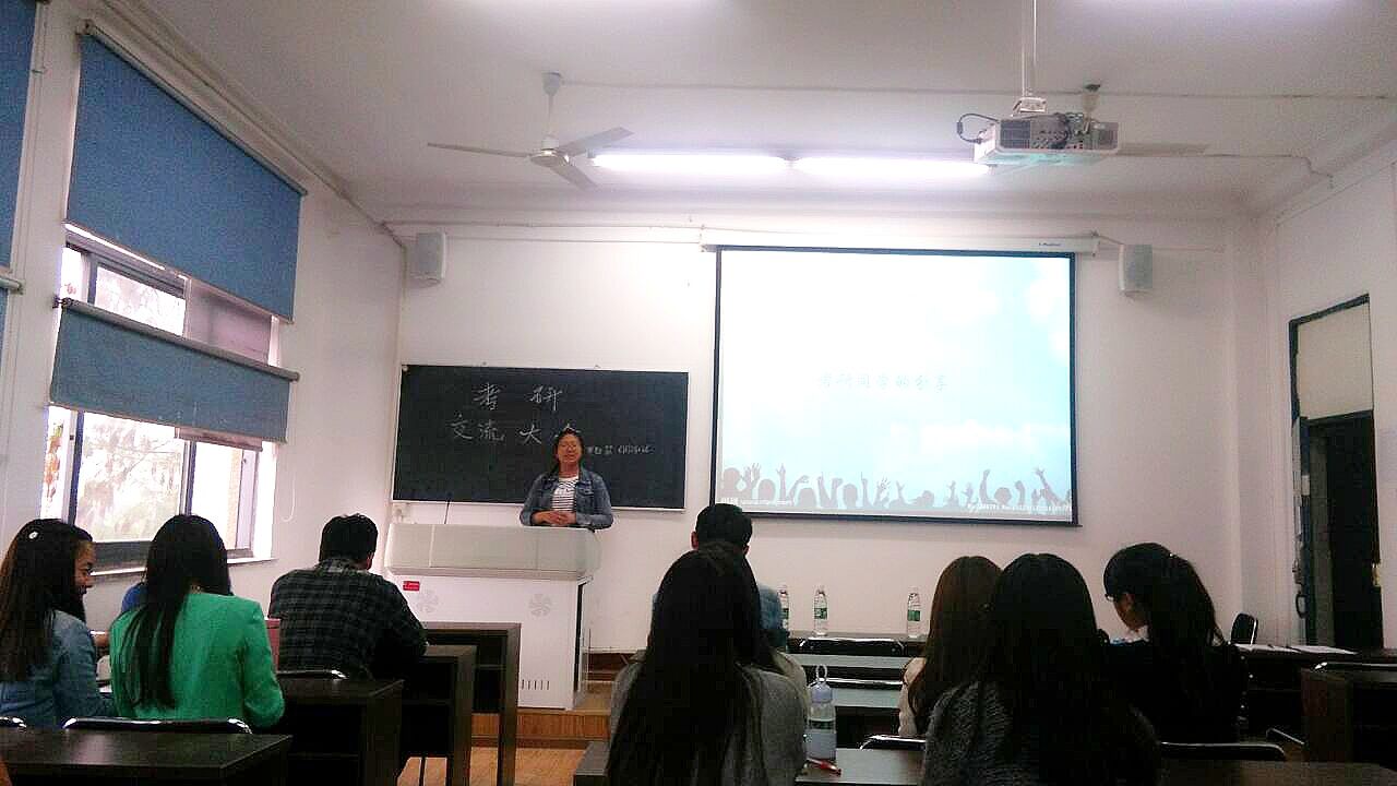 接着,幽默风趣的黄钰筑学姐为同学们分享了她的考研经验。黄钰筑现场和同学们交流了她报考学校的方式方法,并且提醒跨考的同学尽早复习自己的专业课程。同时,黄钰筑向考研学子传授了如何制定一个正确的复习策略、如何选择一本好的复习资料以及如何报选复习班,并强调这是直接影响同学们考研成绩的重要因素。借此,黄钰筑希望同学们能够放松心态,找准自己的定位,合理安排时间,这样会更有助于在考试时取得高分甚至超常发挥。