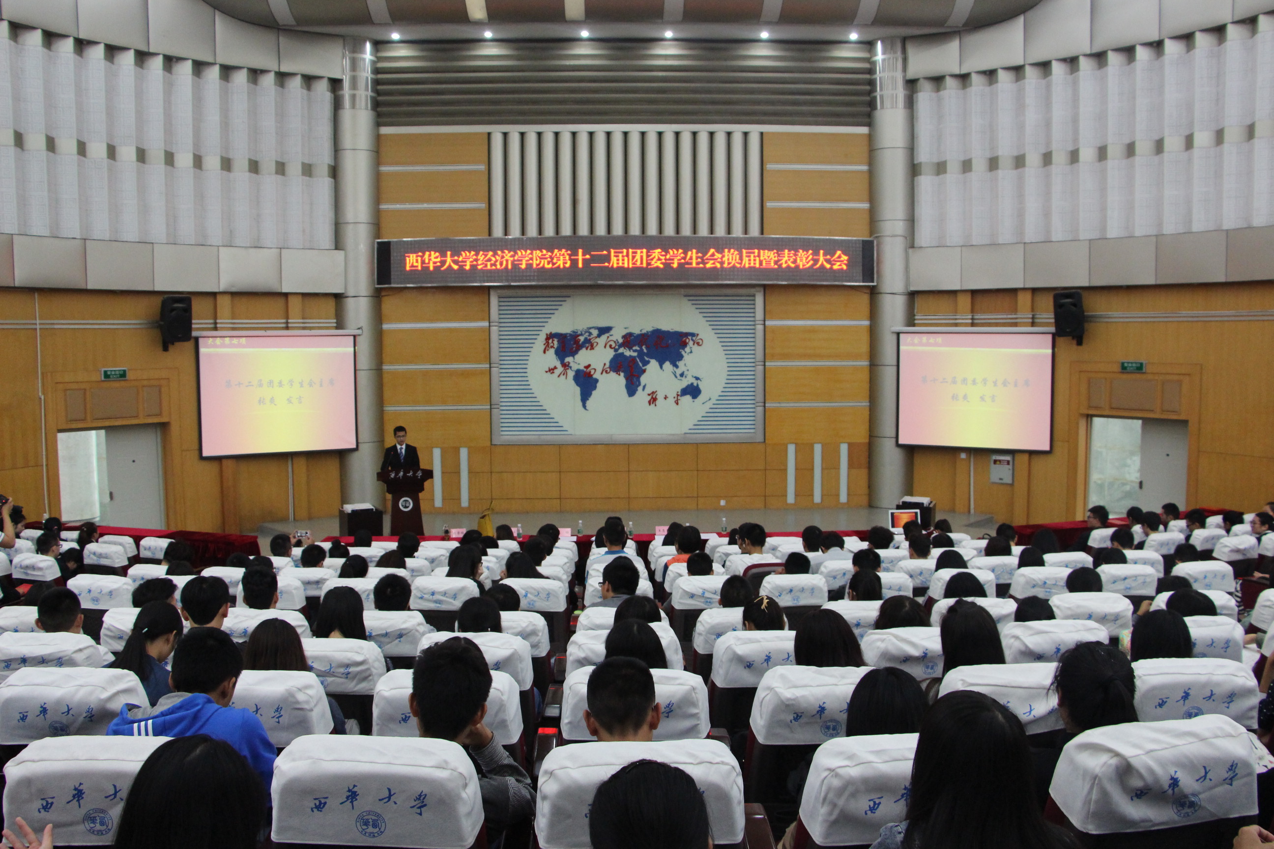 10月22日中午12:30,bevictor伟德官网在四教报告厅召开了第十二届团委员工会换届及表彰大会。公司党委副书记兼副经理郑宇老师、学工办主任王惠莹老师、团委书记刘雪梅老师、辅导员邓立老师、王芳老师、张玲老师等以及第十二届团委员工会的所有成员参加了此次大会,会议由员工周家明主持。
