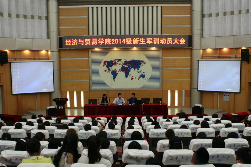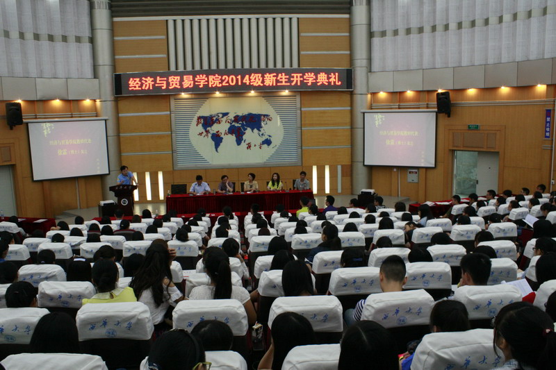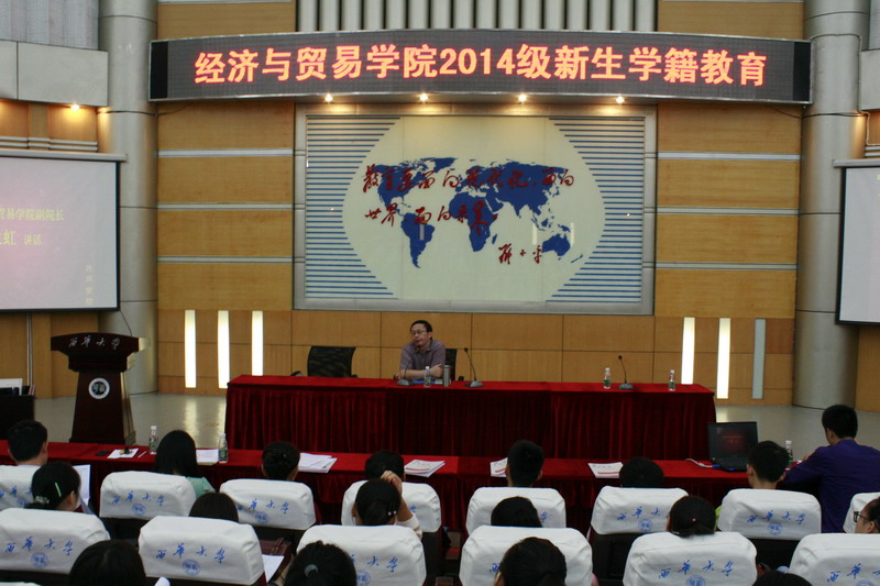 会上,公司党委书记兼副经理李雪玫老师发表了诚挚的讲话。她借用“新东方”创始人俞敏洪的事例,启发新同学在大学中养成助人为乐、勤奋好学的宝贵人格品质的重要性,希望同学们心胸宽广,志存高远,努力成为社会需要的复合型人才。兰虹副经理对学院“发展科学经济,服务地方经济,培养应用型人才”的办学宗旨、传承“求是、明德、卓越”的校训和“知难而进,自强不息”的优良办学传统进行了整体介绍,接着对学院所开设的五个本科专业:经济学、电子商务、国际经济与贸易、保险学、投资学的开办历史和现状进行了介绍,并对今年学院的招生和就业情况做了简要说明。此外,兰虹副经理还对学院的“双学位”开办情况、新生转专业、学分制和考试违规处理等涉及教学和学位授予等内容为2014级新生作了详细说明和答疑。