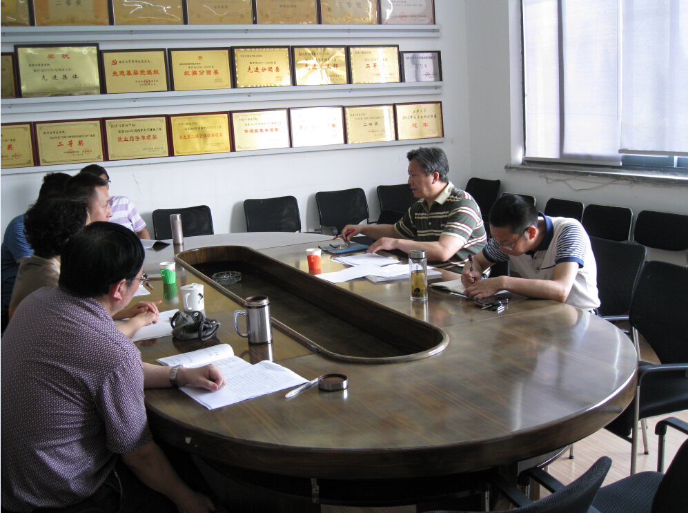 2015年5月15日上午,朱晋蜀副董事长一行莅临bevictor伟德官网调研指导。教务处副处长何太碧陪同调研,公司领导班子全体成员、各系主任、教学办主任、党政办主任参加了会议。