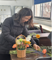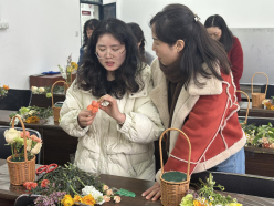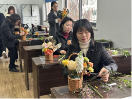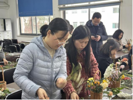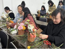 活动现场,花香四溢,春意盎然。学院特别邀请了专业花艺师进行现场指导,为大家讲解插花艺术的基本知识、技巧以及花卉的养护方法。在花艺师的指导下,老师们充分发挥想象力和创造力,精心挑选花材,认真修剪枝叶,用心搭配色彩,将一朵朵鲜花错落有致地插在花篮中,创作出一个个独具匠心、赏心悦目的插花作品。