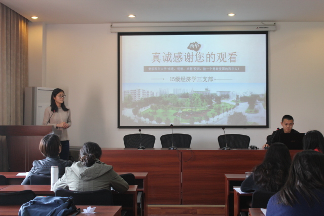 其次,14级保险2支部、15级国际与贸易专业3支部等竞选“五四红旗团支部”、“五四先进团支部”的团支部分别从班级的团组织生活情况、支部建设、学习成就等方面做了基本的介绍。其中,针对四六级通过率、学习成绩挂科率等问题,多数支部表示基本完成学院要求,并表示会更加努力,带动支部创新实践,丰富课外生活。