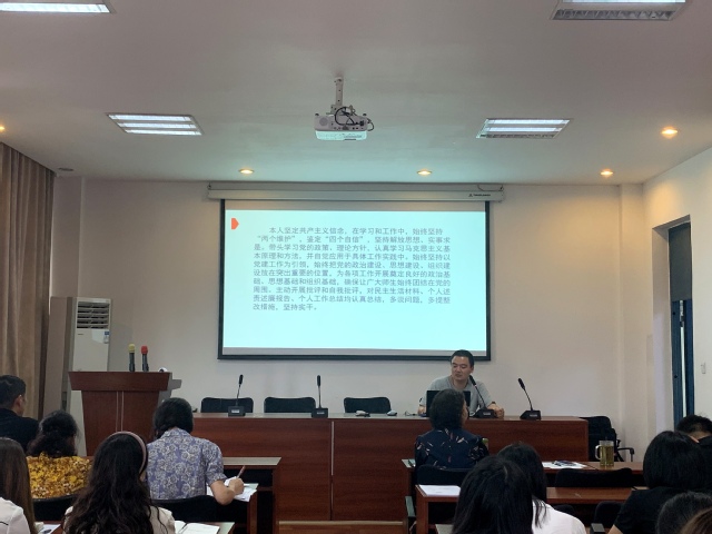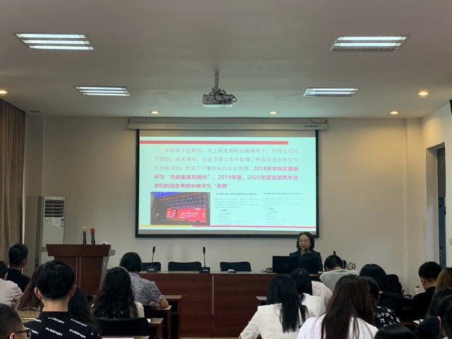 紧接着,副经理兰虹发表个人任期总结报告,他从任期内政治思想建设、党风廉政建设、意识形态工作、执行民主集中制、贯彻党的群众路线、依法执政、科学决策和反对“四风”等情况多个方面展开总结,并提出学院要加强全体教职工在思想意识方面教育,强化大家的责任、忧患、大局、服务等方面的意识。