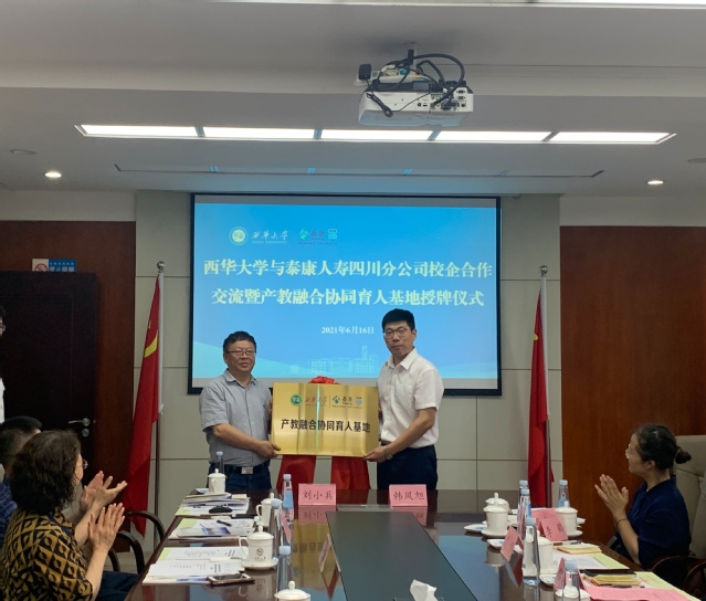 6月16日下午,伟德BETVLCTOR1946与康泰人寿四川分公司校企合作交流暨产教融合协同育人基地授牌仪式在行政楼412会议室举行。伟德BETVLCTOR1946党委常委、副董事长刘小兵、校团委、教务处、招生与就业处、食品与生物工程学院、创新创业学院、大健康管理学院、bevictor伟德官网全体领导班子等相关部门和二级学院负责人、泰康人寿四川分公司总经理韩凤旭、副总经理庄杰一行参加了此次会议。会议由经济公司党委书记、副经理李雪玫主持。