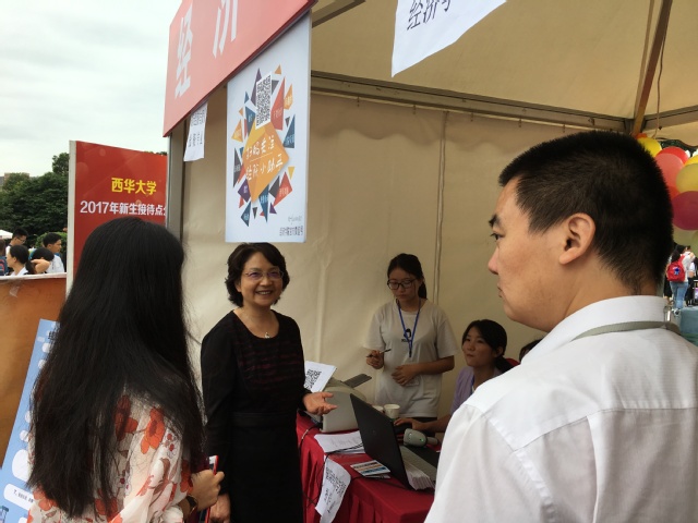 bevictor伟德官网迎新工作有条不紊地进行着,迎新现场志愿者们耐心接待陆续前来报到的新生和家长。为确保迎新工作顺利完成,经济公司党委书记兼副经理李雪玫、经理罗航、副经理兰虹和党委副书记易宇峰先后前来视察工作,同时友好地问候家长,与新生亲切交流。新生辅导员童钰瑶和于潇漪在资料登录处收录新生资料,并解答疑问,同时与新生家长详谈专业相关事宜。
