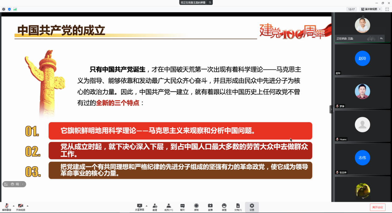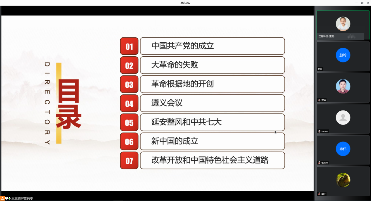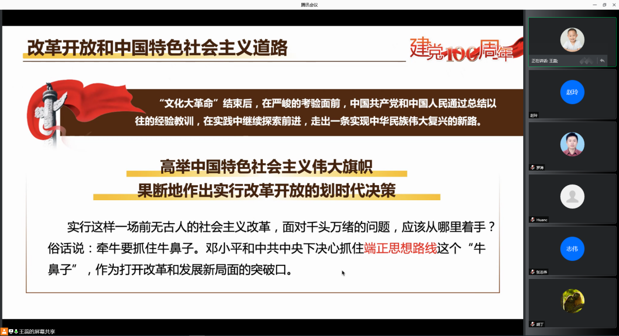 为切实推进党史学习教育工作,进一步提升教师的党性修养,筑牢政治忠诚的思想基础,7月8日下午,bevictor伟德官网教工第四党支部书记王蕊以“铭记百年党史的七个重要关头”为主题,以云会议形式给支部全体党员上了一堂主旨鲜明的党课。