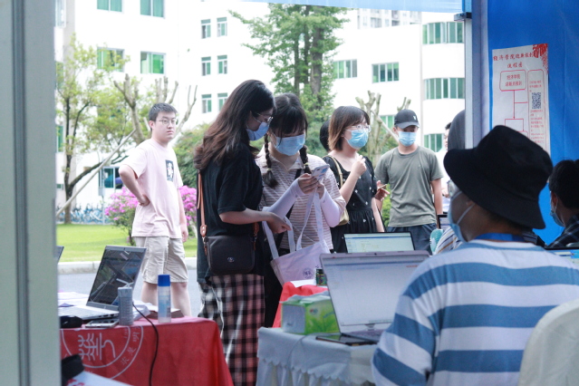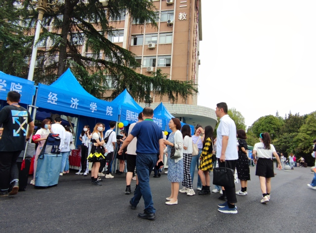 新生在迎新报到点办理手续