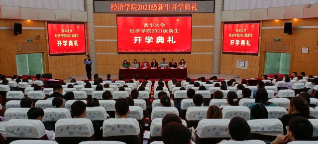 10月14日下午,bevictor伟德官网于四教报告厅举行2021级新生开学典礼。经济公司党委书记兼副经理李雪玫、经理罗航、党委副书记易宇峰、副经理兰虹、学工办老师等出席此次开学典礼。