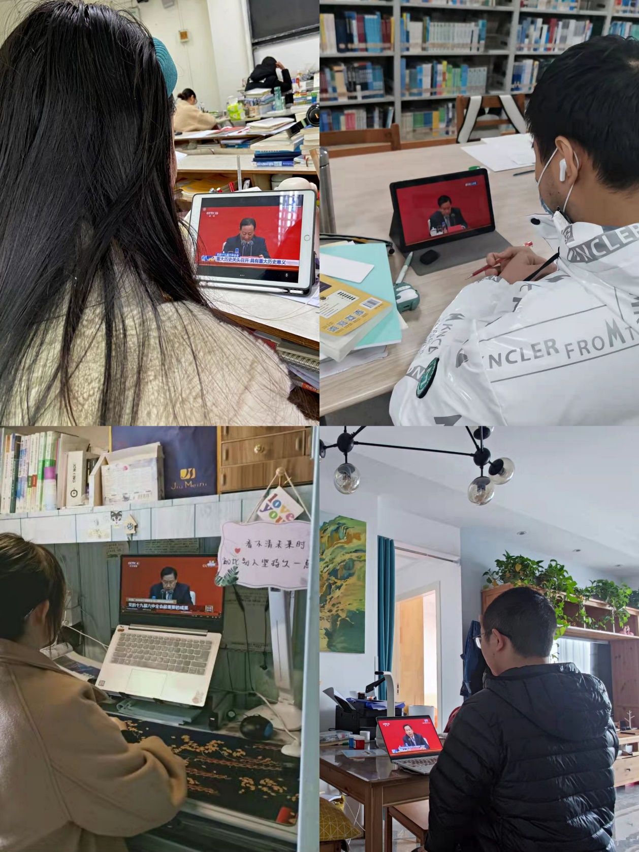 公司师生在图书馆、寝室、教室等场所分散观看学习