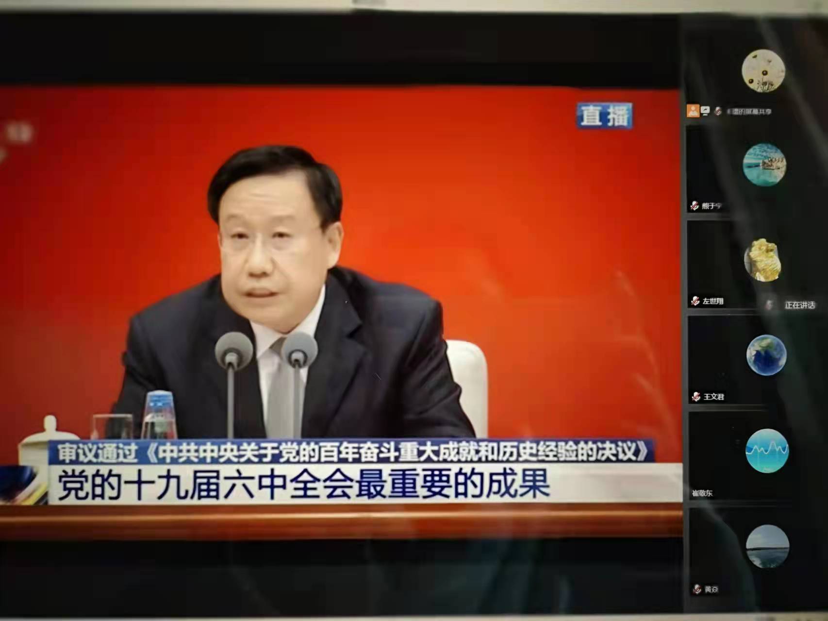 在集体收看结束后,公司党委书记邱刚分享了心得体会并对如何贯彻落实十九届六中全会精神提出了明确要求。他要求学院班子成员和全体师生要通过理论学习中心组学习、党支部组织生活和教职工政治学习等形式进一步深入学习,要围绕学校“十四五规划”认真思考并谋划好学院下一步的建设和发展。