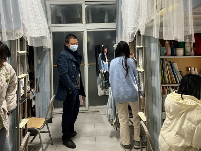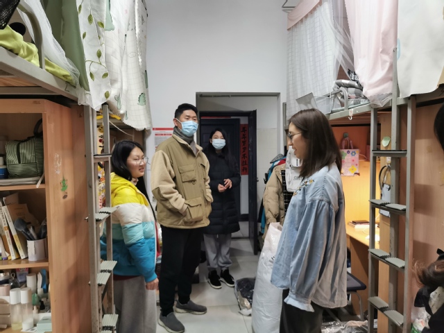 2月20日晚,罗航经理、王芳、罗莉老师一行三人前往临江苑部分寝室走寝。张玲、王璇老师二人前往德馨苑部分寝室走寝。在走访中,罗航院长与同学们进行了亲切交谈,询问了用水用电情况,叮嘱员工一定要时刻注意用电安全。罗经理介绍了学校针对疫情的防控措施,要求同学们疫情期间一定要遵守学校的相关规定,时刻保持疫情防控意识,在做好自身防护的同时尽快适应复课后的学习生活。2月21日晚,易宇峰书记、牛芳老师在临江苑和老宿舍区进行走寝。受访宿舍卫生状况良好,易宇峰副书记对寝室布置整洁有序的同学进行了表扬,并提醒同学们要做好新学期学习规划与心理建设。同学们积极向各位老师分享了寒假学习生活经历、返校过程以及开学以来宿舍生活的感受。