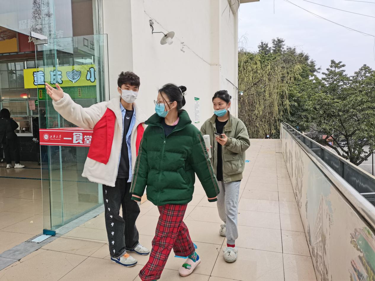 在杨馨的带领下,志愿者们参加了2月28日、3月5日的食堂防疫劝导活动,地点分别是一食堂与四食堂。首先,志愿者们根据活动要求穿上特定的志愿者服装,分为早、中、晚三组,分别在指定的时间段和特定的食堂进出口进行食堂防疫劝导志愿活动。在活动期间,志愿者耐心劝导同学“单进单出”,按照防疫要求从指定进出口进出食堂并佩戴口罩,不扎堆,保持安全社交距离。在志愿者的认真负责与同学们的积极配合下,此次志愿活动圆满完成。