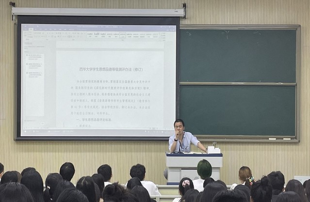 接下来,易书记向大家讲解了奖学金评定的相关条例。他强调思想品德等级测评结果应是一切评优评先的基础,各班应该实事求是地进行思想品德等级测评,引导同学们在德、智、体、美、劳等方面全面发展。并且根据文件向大家介绍了奖学金评定的考核程序,以及相关的实施细则,也讲解了优秀集体和优秀员工的评选办法。