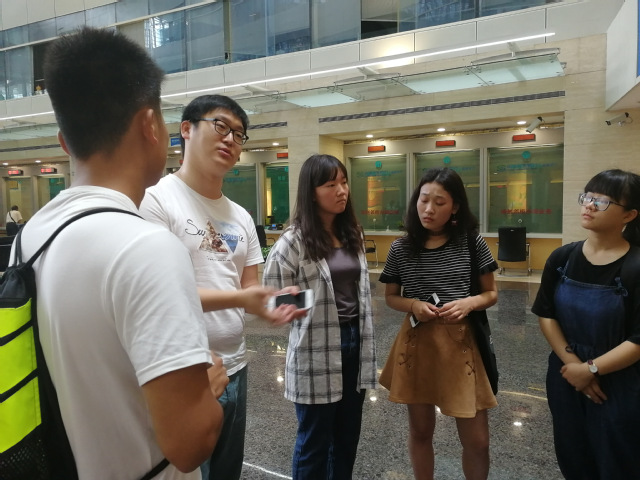 沟通交流完后,肖行长和孔经理带领着党校学员们参观银行大厅,为学员们介绍银行的业务流程和部门机构分布,学员们在参观过程中有什么问题,肖行长和孔经理一一为学员解答,如关于银行人员的调整等。
