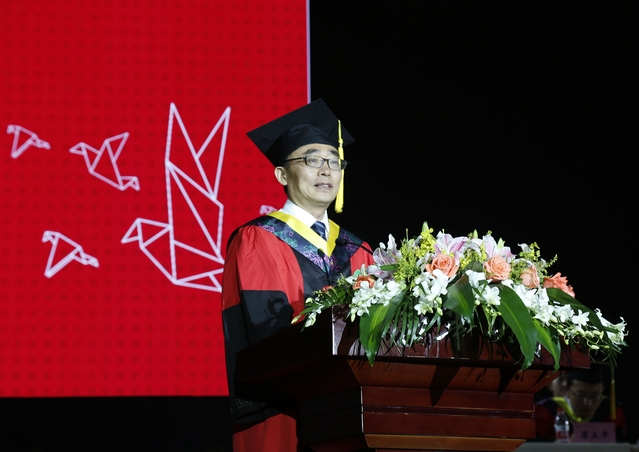 典礼上,学校还为员工联络员颁发了聘书。在能源与动力工程学院蒋壮同学的带领下现场毕业生进行了庄严宣誓。最后,边慧敏书记深情寄语各位学子“希望大家能带着亲人的期待、老师的嘱托和母校的祝福,向着远方振翅高飞、翱翔天际”。再次表达了对全体毕业生的祝福。