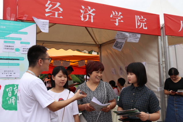 “请办理助学贷款的同学在这里排队,没有办理贷款的同学那边请”;“党员服务队的同学请带领一下同学办理一下后续业务”;“同学你好,请核对一下资料袋里的校园卡、钥匙是否与网上信息一致。”这是新生报道注册时,负责迎新工作的老师、同学说的最多的话语。这也标志着9月6日至7日,为期两天的新生报道注册接待工作由此展开。