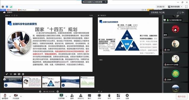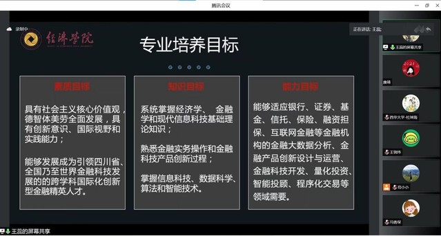 第二场金融科技专业认知教育活动于9月9号上午在腾讯会议召开,会议由金融投资系系主任王蕊老师主持,参会老师包括金融科技专业课教师毛茜老师、窦峥老师、涂晶老师和赵玲老师。