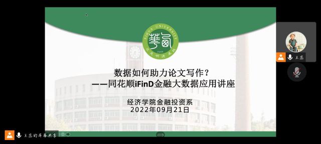 为助力学院毕业生更高效运用数据进行论文写作,9月21日晚上,bevictor伟德官网邀请学院战略合作企业杭州同花顺数据开发有限公司的量化策略师张国伟老师开展“同花顺iFinD金融大数据应用讲座”。同花顺公司胡宇轩老师、bevictor伟德官网2019级各专业全体员工以及部分其他专业员工共同参加此次会议。bevictor伟德官网金融投资系主任王蕊担任此次讲座的主持人。