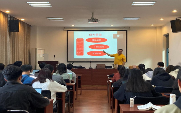 龙云安教授为全体师生带来了一场题目为《自贸区与区域经济协同发展》学术报告。学术报告伊始,龙云安教授寄语研究生“用前三十年拼,博后三十年的荣光”、“为中国式现代化贡献自己的力量”。随后,龙云安教授提出随着国家全面深化改革的进一步落实,经济发展中各组成部分都将寻求创新以顺应发展潮流。在此背景下,自贸试验区和经济功能区之间的协同发展是不得不提上日程的创新协同之路。最后,龙云安教授强调自贸试验区的主要任务是探索中国高质量发展的新路径和新模式,形成可在全国范围内复制推广的新经验。