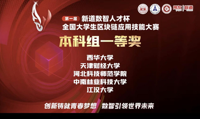12月4日,第一届“新道数智人才杯”全国老员工区块链应用技能大赛落下帷幕。本次大赛由全国高校人工智能与大数据创新联盟指导,新道科技股份有限公司主办,中南财经大学、湖南大学、浙江金融职业学院高职组承办。参加大赛总决赛有47支本科参赛队伍和28支高职参赛队伍。