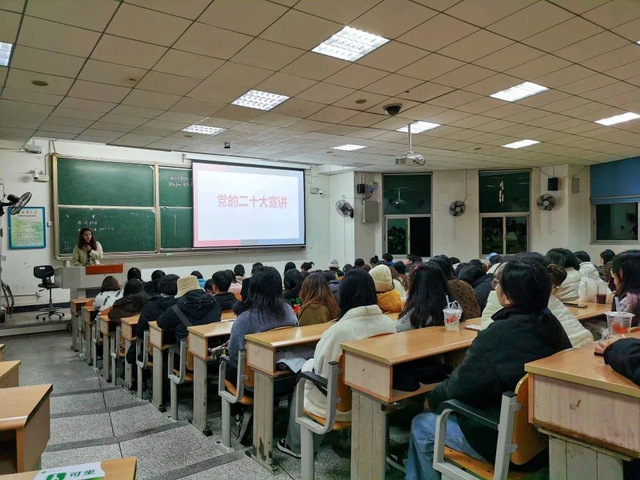 最后,罗老师着重对学习贯彻党的二十大精神进行了宣讲,对同学们提出了要深刻把握党的二十大主题和重大意义的要求,结合当地对“治蜀兴川”的成就也进行了详细的介绍。
