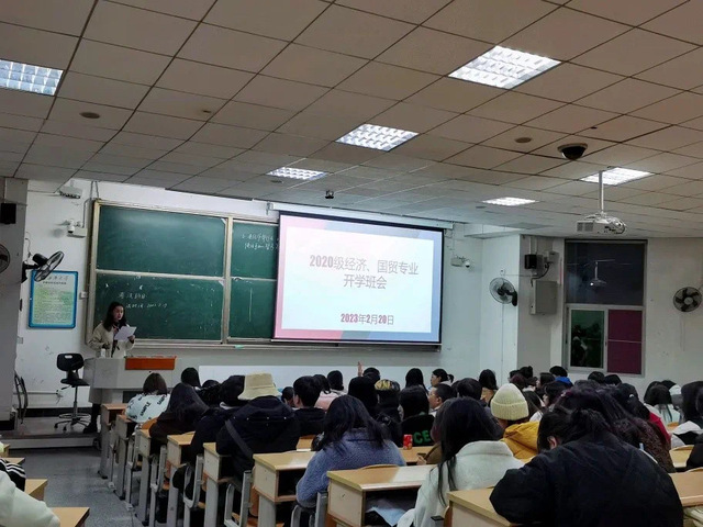 新学期伊始,为给同学们讲解开学的各项事宜,2023年2月20日晚七点,2020级经济学及国际经济与贸易专业第一次专业大会于4A304召开,辅导员罗莉及两个专业全体同学参会。