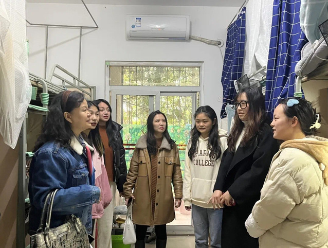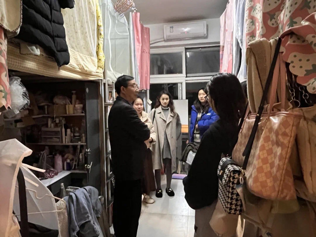 邱刚、罗莉及部分团委员工会干事于2月27日晚上七点走访临江苑2020级员工及部分2022级员工宿舍。在走访的过程中,邱刚和罗莉详细询问了同学们的生活近况和需求,并一一解答同学们在生活、学习以及未来职业规划发展道路方面的困惑。紧接着,他们勉励员工要保持一定的体育运动,加强锻炼,不断丰富精神生活,全面提高身体素质。