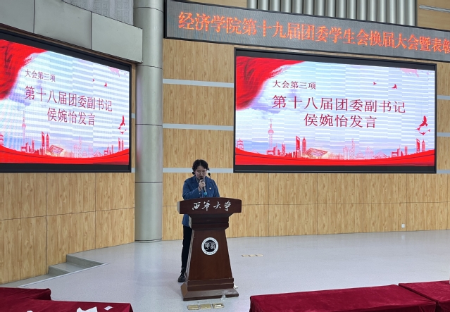 接着,第十八届团委副书记侯婉怡上台发言,她对过去的一年的工作进行年度工作总结,并提出三点殷切希望:第一,端正自身,正确定位;第二,努力学习,踏实工作;第三,学会总结。