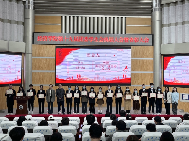 随后,主持人宣读第十九届团委员工会干部聘书颁发名单,并由易宇峰、苟小小、牛芳、李娟为第十九届团委员工会干部颁发干部聘书,并对第十八届团委员工会优秀部门进行表彰、颁布荣誉证书。