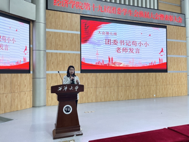 然后,团委书记苟小小上台发言,对团学所有成员提出四点要求:一是勇于热爱,奔赴山海;二是牢记三心——细心、耐心和责任心;三是重视学习;四是注重实践。