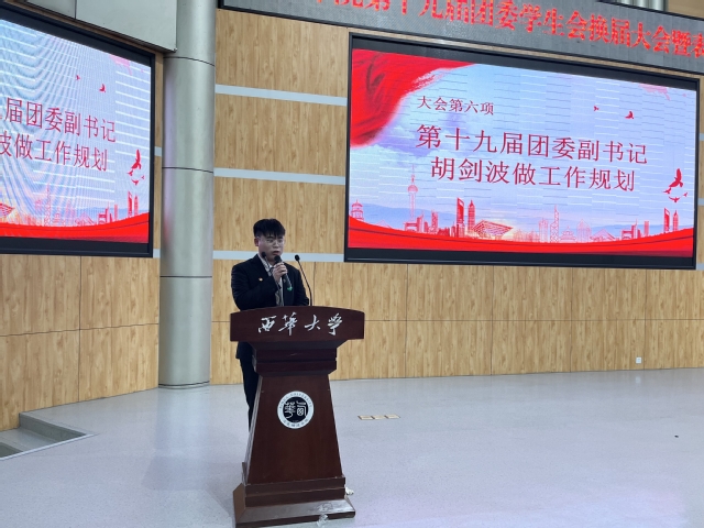 之后,第十九届团委副书记胡剑波上台作工作报告与规划,他重点强调要注意加强部门内部建设,加强部门相互学习。