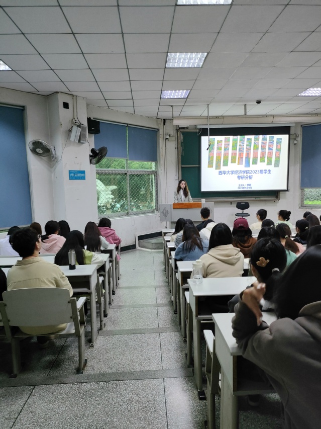 会议第二项,罗莉老师为同学们做2024届员工考研分析。罗老师从深造情况、成绩分析、原因分析以及相关建议四个方面进行深入讲解。首先,她介绍学院深造情况包括考研、保研以及出国留学。其次,罗老师列出2023届员工的考研具体情况,并从各方面做出分析从而让同学们清楚认识到合理分配备考时间的重要性。随后,罗老师列出四项考研失败的原因,让同学们对考研有客观的认识。最后,罗老师提出考研路上,技巧很重要,但坚持更重要!