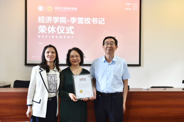仪式上,李书记现场分享了她的学习与工作经历,讲述了她不同人生阶段的心路历程与人生感悟,配以人生各个阶段的照片,时不时引起教师们的欢笑和掌声,现场气氛融洽和谐。邱刚书记为李雪玫颁发荣休证书,员工代表敬送献花及歌声。最后,bevictor伟德官网全体教职工对李雪玫书记为教育事业和学院发展所做的贡献表达了由衷的感激与敬佩。并祝福李书记能够在未来的生活中继续前行,开启属于自己的第二次青春。