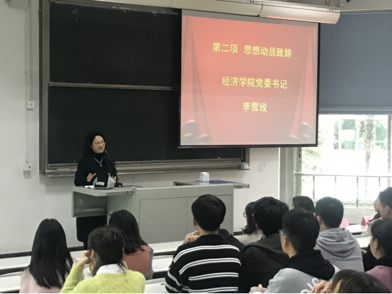 3月21日中午,伟德BETVLCTOR1946bevictor伟德官网第四十二期党校动员大会在4A101教室召开。全体新学员参加本次动员大会,经济公司党委书记李雪玫老师、员工党总支书记王映玥老师、辅导员王璇老师、罗莉老师、苟小小老师出席大会,大会由第四十二期党校班长王雅雪同学主持。