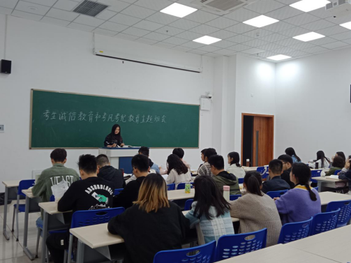 3月29日晚6点,宜宾研究院电子商务专业在宜宾研究院1教102教室就“考生诚信教育和考风考纪教育”召开了主题班会,电子商务全体员工参加,班会由公司助理辅导员彭徐琳老师主持。